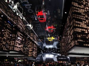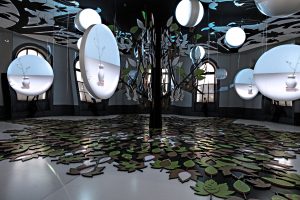 The FLEXMIRROR® is composed of a self-supporting aluminum frame covered with a 30 μm thick mirror film stretched by the machine. This is then machined in an independent process – depending on the application area – to produce an almost 100% distortion-free mirror image. We manufacture our mirrors to the customer’s specifications and in any conceivable shape and size. Be it small or large mirror surfaces, if required, even entire rooms or halls. Square, rectangular, triangular, as a polygon, or as a unique round shape. Moreover, we can quickly produce circular cut-outs without any loss of quality in the mirror film, for example, in the case of sprinkler systems or lighting.
